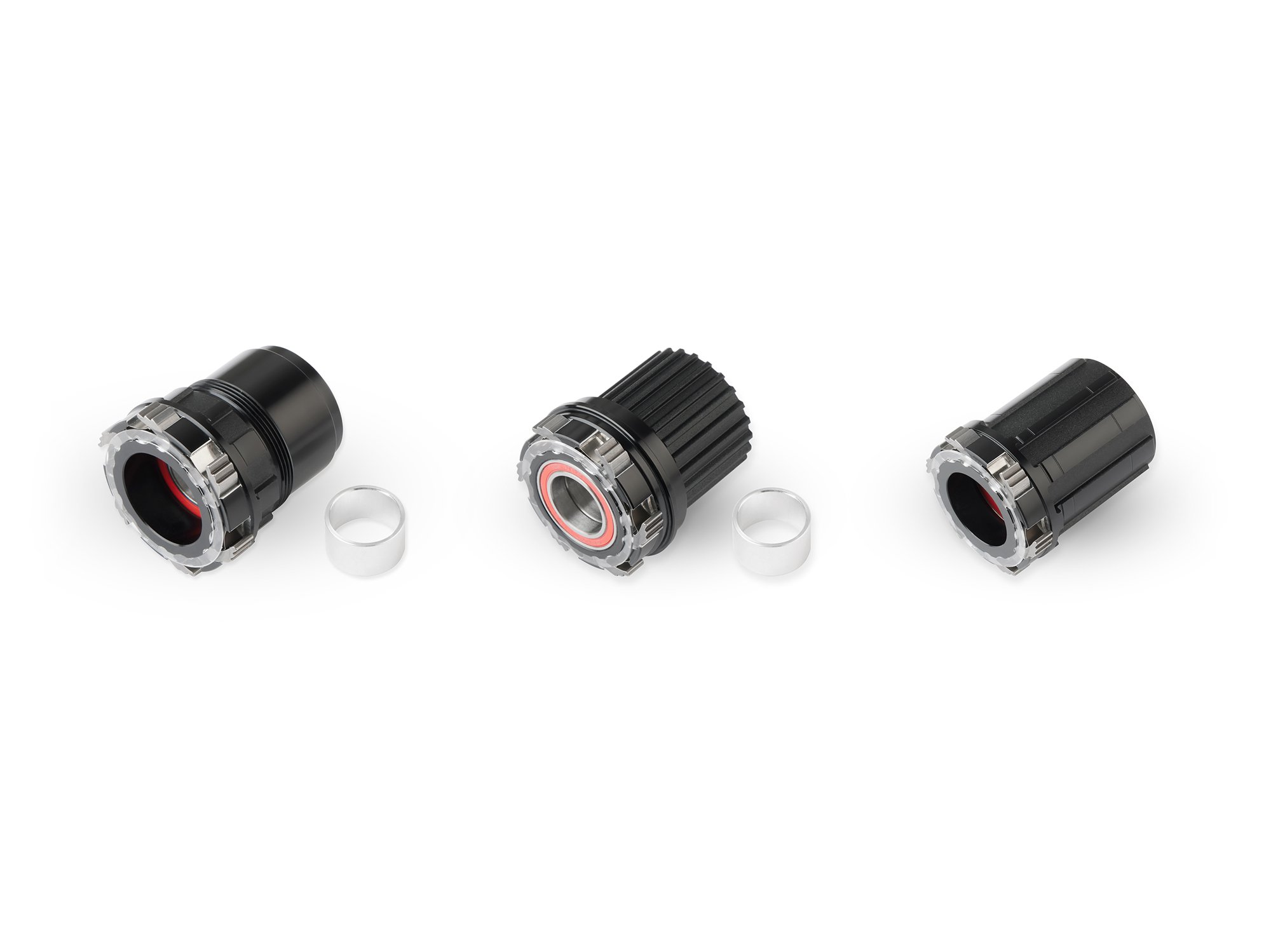 Lightweight disc hubs with 6061 aluminum body. 7075 aluminum freehub and axle. Hub equipped with four or five sealed bearing seals: two in the hub body and two (or Shimano MicroSpline version - three) in the freehub. The front hub has two bearings. The hubs enable the possibility of adapting to various solutions.