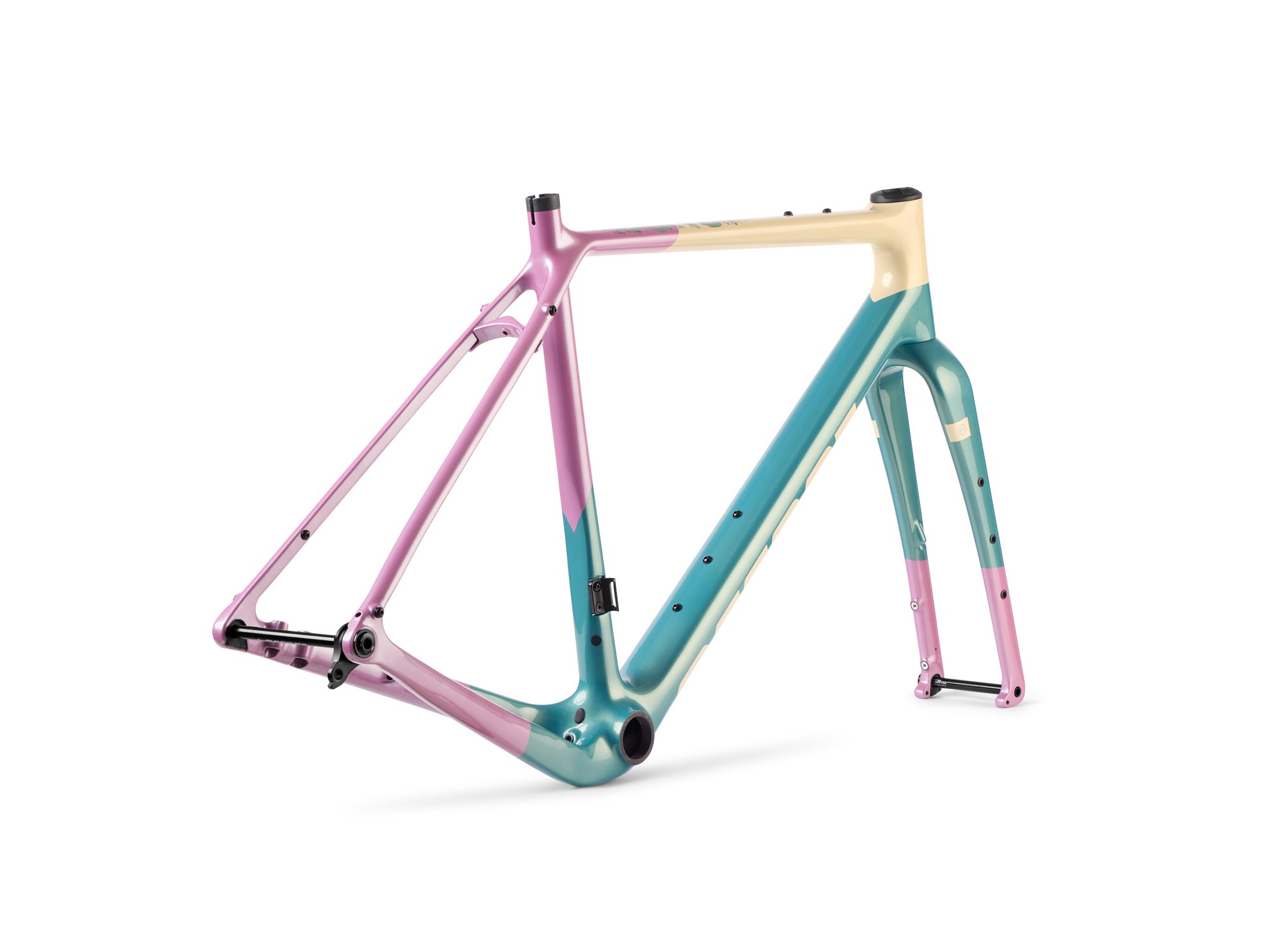 W zestawie otrzymasz: karbonowy set rama + widelec, hak UDH, stery do integracji wraz ze specjalną pokrywą Acros, sztywne osie, oraz komplet przelotek.